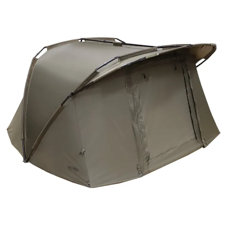 Conçu en tissu 210D ultra étanche 10 000 mm HH, il assure une excellente résistance à la pluie. Il est livré avec un tapis de sol Tuff-lite™ amovible, plus léger et plus durable qu’un tapis PVC classique. Son large accès, sa ventilation arrière et ses poches internes en font un abri complet, parfait pour les sessions carpe en solo.