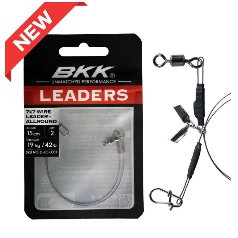 Le BKK 7×7 Wire Leader-Allround est fabriqué à partir d’un acier inoxydable japonais haut de gamme en structure 7×7 brins (49 fils) de couleur gris foncé. Il offre une souplesse remarquable, une fluidité optimale et une mémoire quasi nulle, permettant une présentation naturelle du leurre avec une grande durabilité.