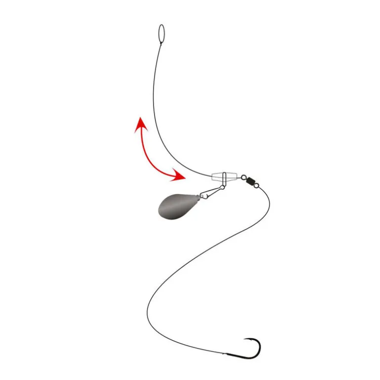 Une ligne montée mer en 100% fluorocarbone (quasi invisible sous l’eau) sur 3.5m lui garantissant un maximum de discrétion, laissant les poissons nager et s’alimenter sans craintes.
