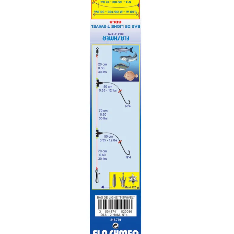 Les avançons sont montés sur des T-swivel vous garantissant une rotation parfaite évitant ainsi tout risque d’emmêlement lors de vos lancers ou lors de la descente de vos appâts en bateau par fort courant.