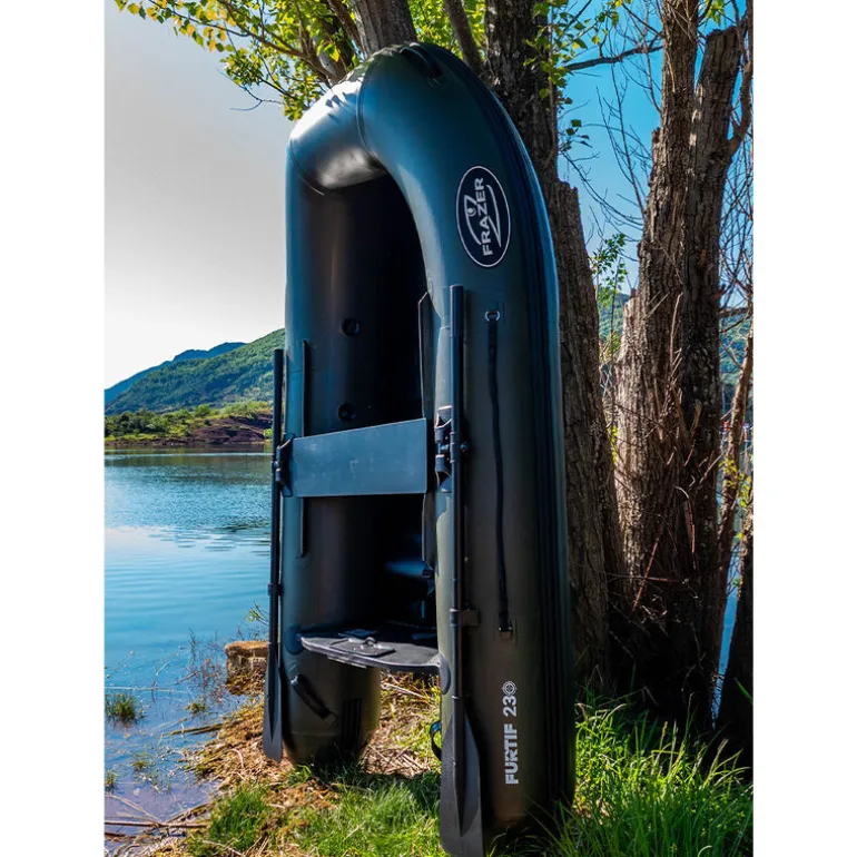 Conçu pour les plans d’eau étroits et les coin‐coins de rivière, le FRAZER Furtif 230 allie agilité et robustesse. Avec ses 2,30 m de long et ses tubes de 36 cm de diamètre en PVC 0,75 mm, il se glisse facilement là où les embarcations plus volumineuses ne passent pas, sans sacrifier la solidité ni la stabilité. Sa largeur de 137 cm (65 cm à l’intérieur) offre un espace suffisant pour deux pêcheurs et leur matériel, tandis que le plancher à lattes et les bandes de protection PVC garantissent confort et résistance aux chocs lors de vos ancrages ou approches discrètes au fil de l’eau.
