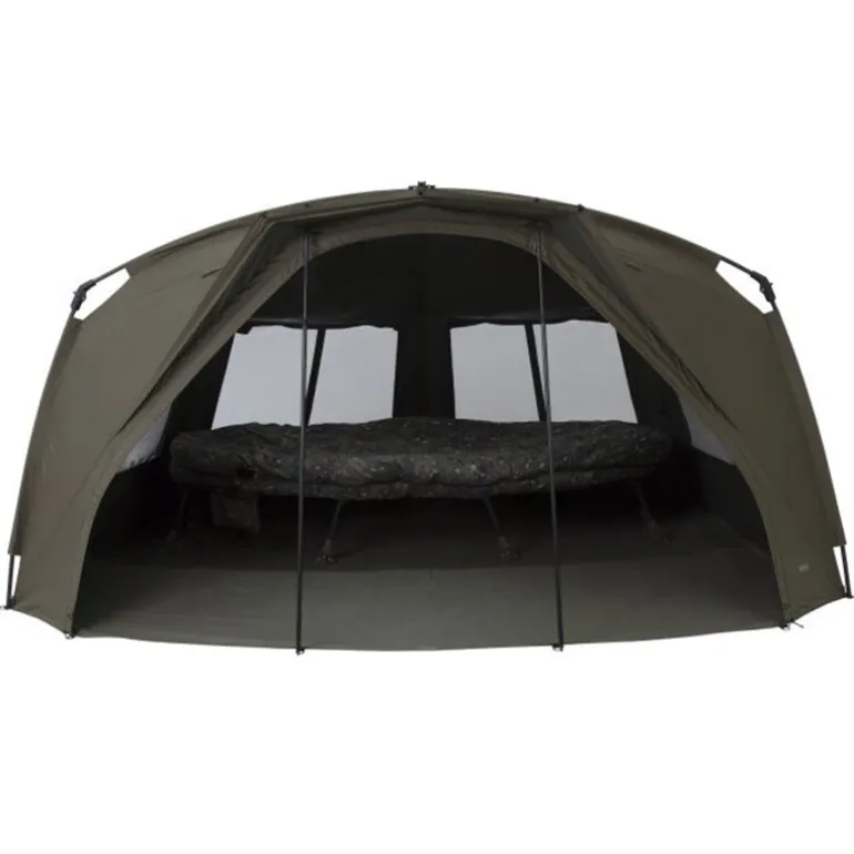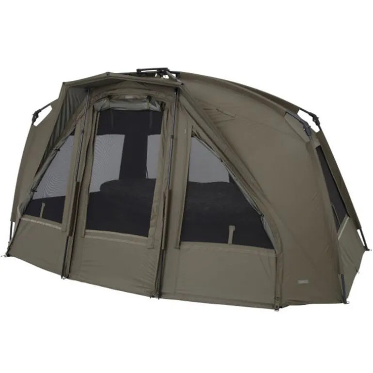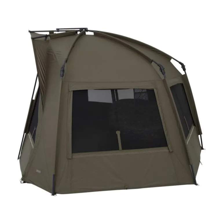 Sa structure en aluminium assure une excellente rigidité tout en conservant une grande légèreté. L’arrière redessiné, plus plat que sur les versions précédentes, améliore considérablement le volume intérieur exploitable, offrant plus d’espace pour le bed chair et le rangement, tout en conservant un profil aérodynamique performant face au vent.