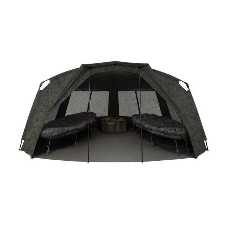 La circulation de l’air à travers l’abri a été améliorée avec la ventilation adaptative sur six ouvertures (quatre à l’arrière et deux à l’avant), facilitant le flux d’air même lorsqu’il pleut. Pour rester plus frais en été, les quatre ouvertures arrière peuvent être fixées avec des sardines pour créer des zones ombragées, ce qui, utilisées avec une Skull Cap, peut réduire la température interne de plusieurs degrés.