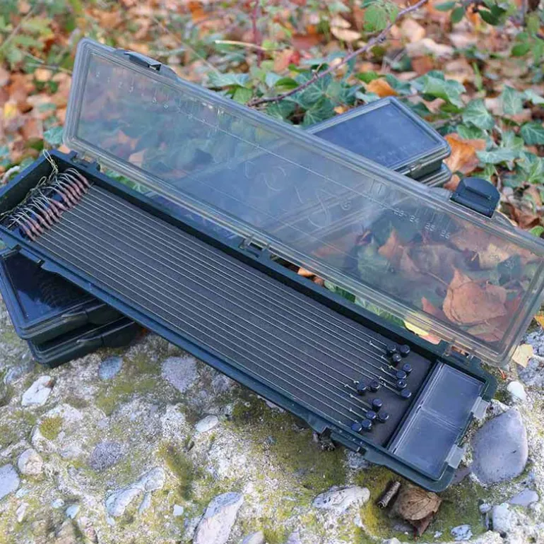 Longue boîte pour ranger les bas de lignes aussi bien en fluorocarbone qu’en tresse. Elle possède également des cases pour ranger vos accessoires.