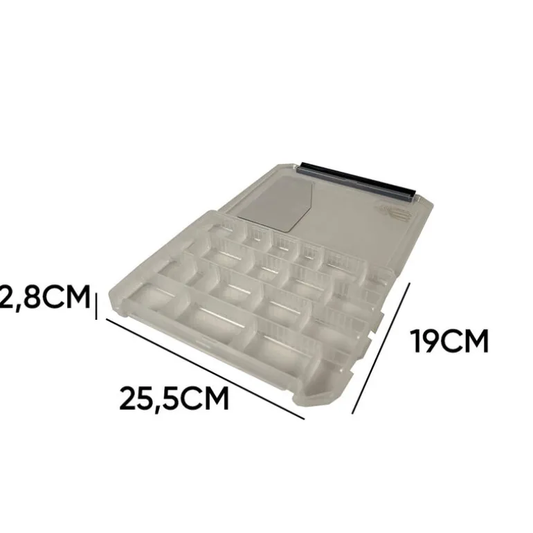 La Versus VS-3020NS est une boite àcompartiments de haute qualité qui est un complément indispensable à toute boîte à pêche. La boite de pêche en plastique est livrée avec 16 séparateurs amovibles en plastique et 3 rangées fixes. Les séparateurs peuvent être placés dans différentes fentes à l’intérieur de la boite afin de créer des compartiments de tailles différentes pour des articles de pêche de toutes tailles. La VS-3020NS est également équipée d’un couvercle à charnière avec une fermeture à loquet solide qui maintient le couvercle fermé pendant le transport.