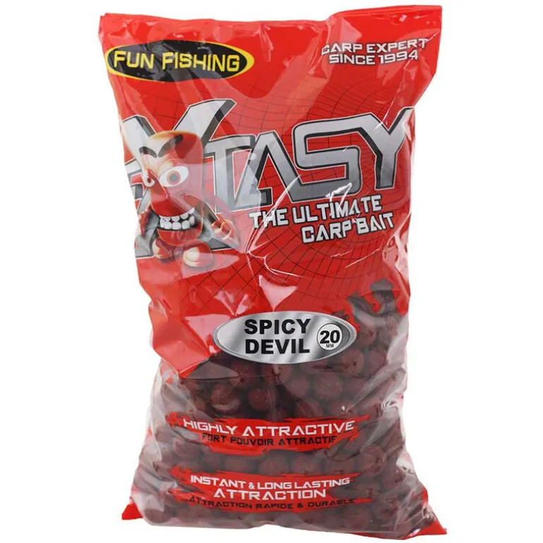 La Spicy Devil est issue d’une fusion subtile d’huiles essentielles (épices et herbes aromatiques), d’oléorésine de Paprika, de bases carnées (farine de volaille, hydrolysat de volaille, plasma), de CSL (liqueur de maïs fermentée), de chènevis grillé afin d’apporter une légère granulométrie… Difficile de faire mieux en terme d’appétance et d’apport nutritionnel ! La Spicy Devil est une bouillette diabolique et ultra-digeste, avec laquelle vous pourrez pêcher en toute confiance et sans risque de gaver les carpes. Incoutournable pour les adeptes des bouillettes épicées.