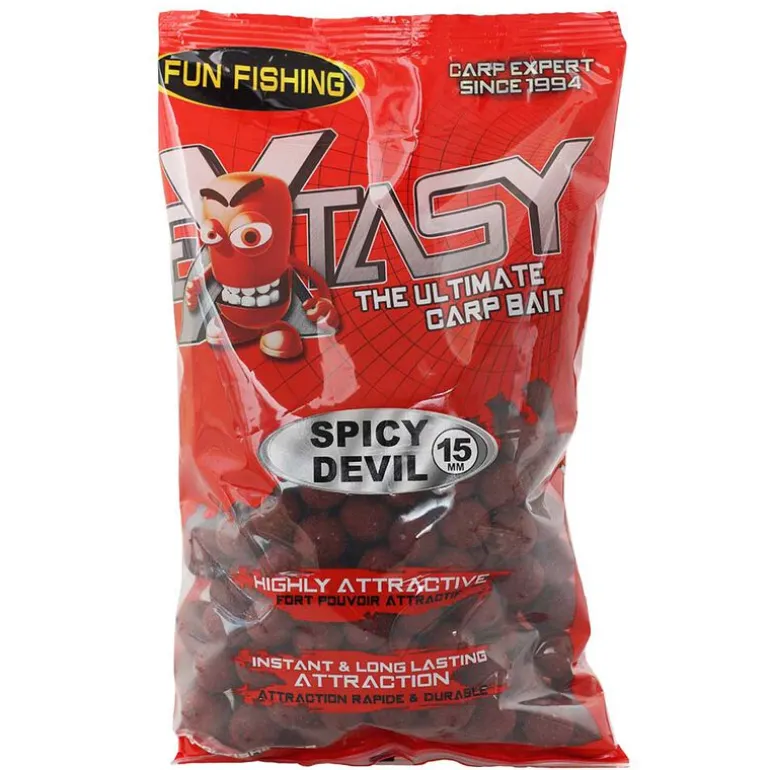 La Spicy Devil est issue d’une fusion subtile d’huiles essentielles (épices et herbes aromatiques), d’oléorésine de Paprika, de bases carnées (farine de volaille, hydrolysat de volaille, plasma), de CSL (liqueur de maïs fermentée), de chènevis grillé afin d’apporter une légère granulométrie… Difficile de faire mieux en terme d’appétance et d’apport nutritionnel ! La Spicy Devil est une bouillette diabolique et ultra-digeste, avec laquelle vous pourrez pêcher en toute confiance et sans risque de gaver les carpes. Incoutournable pour les adeptes des bouillettes épicées.