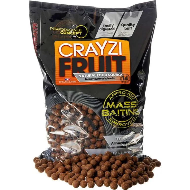 Le CRAYZI FRUIT MASS BAITING est une bouillette de fond spécialement formulée pour le mass baiting (amorçage massif), idéale pour attirer un grand nombre de poissons sur une zone de pêche. Issue de la gamme Performance Concept, cette bouillette se distingue par sa couleur marron clair, permettant une parfaite intégration dans l’environnement naturel tout en maintenant une attraction constante. Conçue pour une dissolution rapide, elle libère ses arômes fruités puissants sur une large zone, optimisant ainsi vos chances de succès en amorçant efficacement le fond.