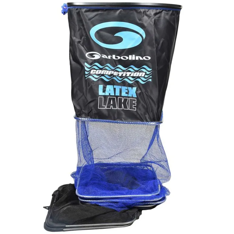 Bourriche en mailleLatex – Arceau de départ de forme demi lune 50×50 cm puis rectangulaire 50×40 cm.Arceau de départ noir puis bleu caoutchouté.Maille de 4mm puis 2mm sur les 2 derniers arceaux de colris noir.