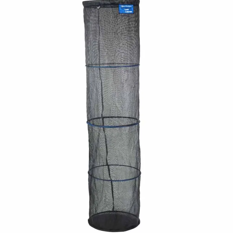 Cette bourriche ronde est réalisée en maille hydrophobe noire, offrant robustesse et durabilité pour le stockage et la conservation des poissons.