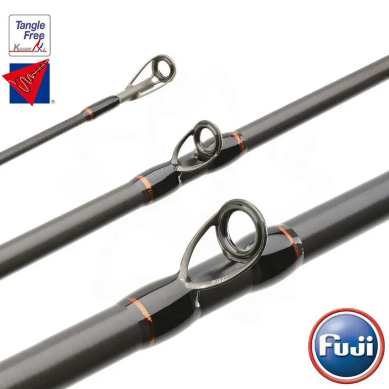 Les anneaux «Concept O-Ring» de Fuji sont composés de bagues en Oxyde d’aluminium. La résistance de cette céramique aux frottements et à l’échauffement est compatible avec tout type de tresse et de monofilament pour mener à bien un combat avec un gros poisson. La version «slim», utilisée sur une partie des rampes d’anneaux, est 12% plus légère qu’un anneaux classique «O-Ring».