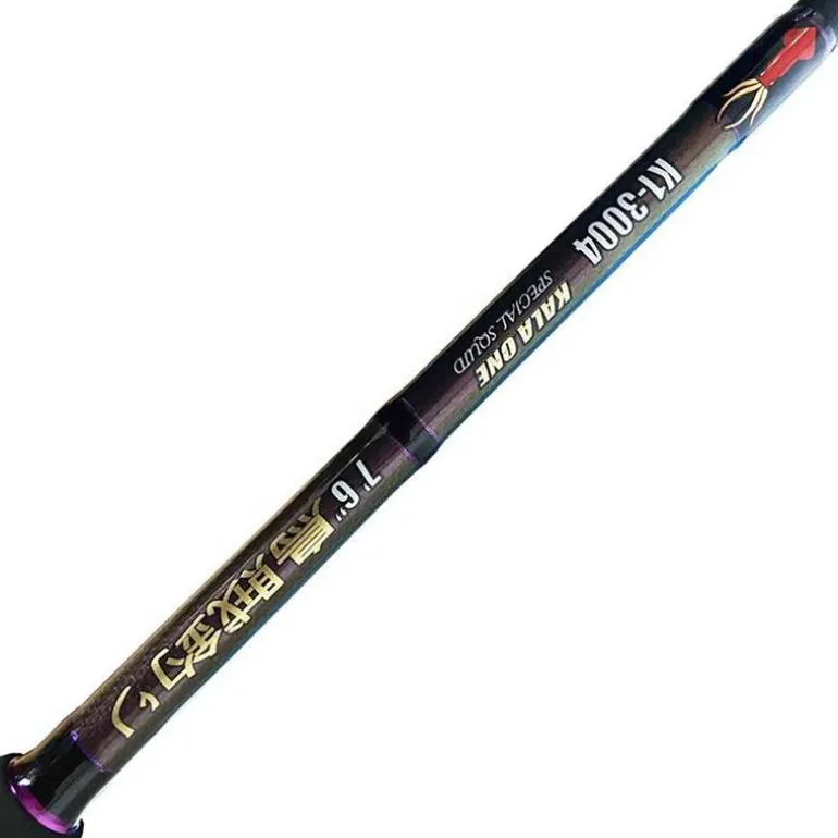 La K-ONE KalaOne (référence K1‑3004) est une canne spinning conçue spécifiquement pour la pêche des céphalopodes depuis le bateau. D’une longueur de 2,32 m, elle dispose d’une plage de puissance de 10 à 60 g, parfaitement adaptée pour animer les turluttes et détecter les touches subtiles des calamars.