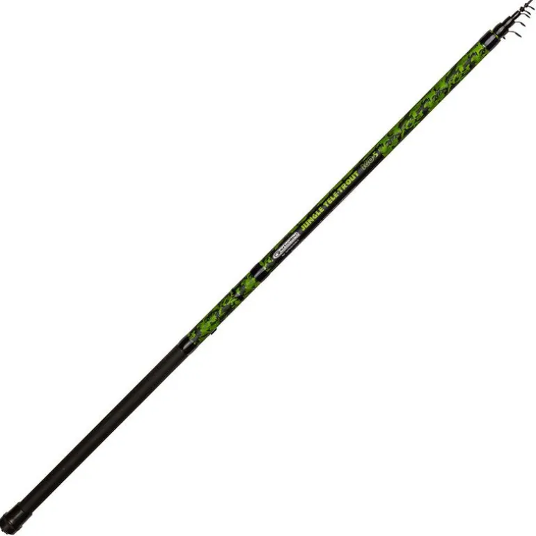 Cette gamme de cannes GARBOLINO JUNGLE TELE inaugure un nouveau concept de produits simples, fiables et efficaces pour la pêche de la truite. Particulièrement adaptée aux pêcheurs pratiquant occasionnellement et aux jeunes adeptes, cette gamme de cannes télescopiques en carbone composite possède toutes les caractéristiques nécessaires à la pêche au flotteur ou au toc dans les étangs ou ruisseaux. La construction télescopique permet de facilement replier la canne en laissant le montage en place pour les déplacements ou la partie de pêche suivante.
