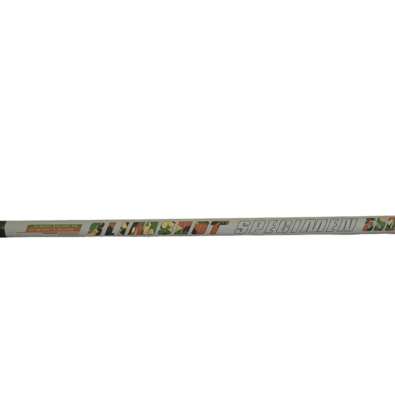 La canne SLIMSHOT PRO SPECIMEN 580 est un modèle spécifiquement développé pour les pêches fortes de «spécimens» en bordure. Grâce à son deuxième talon sérigraphié et renforcé, elle peut être utilisée en longueur pleine à 5.80m, où en retirant le talon pour obtenir une canne plus courte, portée à 4.70m. Fabriquée à partir de nappes carbone haut module, la SLIMSHOT PRO SPECIMEN 580 a été mise à rude épreuve lors des phases de test, et sa grosse réserve de puissance lui a permis de contrer sans effort de très gros poissons, tels que des carpe de 15Kg+ ou des esturgeons de 20Kg+!