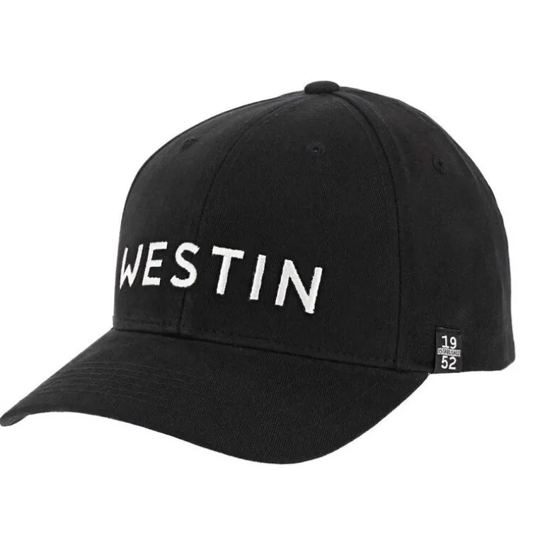Casquette classique noire à cinq panneaux avec logo Westin en relief. Construction entièrement en coton pour une protection supplémentaire.