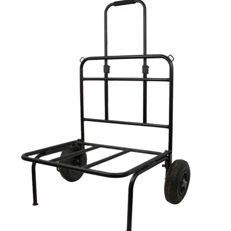 Avec sa structure en aluminium légère mais robuste, ses roues gonflables et son design compact, il permet de transporter sans effort tout votre équipement jusqu’à votre poste, même sur les berges les plus encombrées.