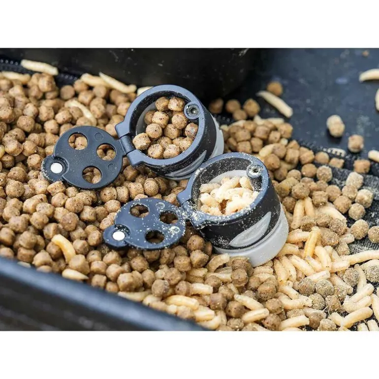 Le Magna Pot entre en jeu lorsque des appâts secs ou durs, tels que les pellets ou les asticots, doivent être alimentés en vrac avec précision.