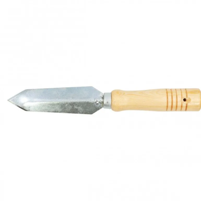 Il est réalisé en acier galva pour résister à la corrosion de la mer. Ce couteau creux à palourdes est doté d’un poignée en bois vernis.