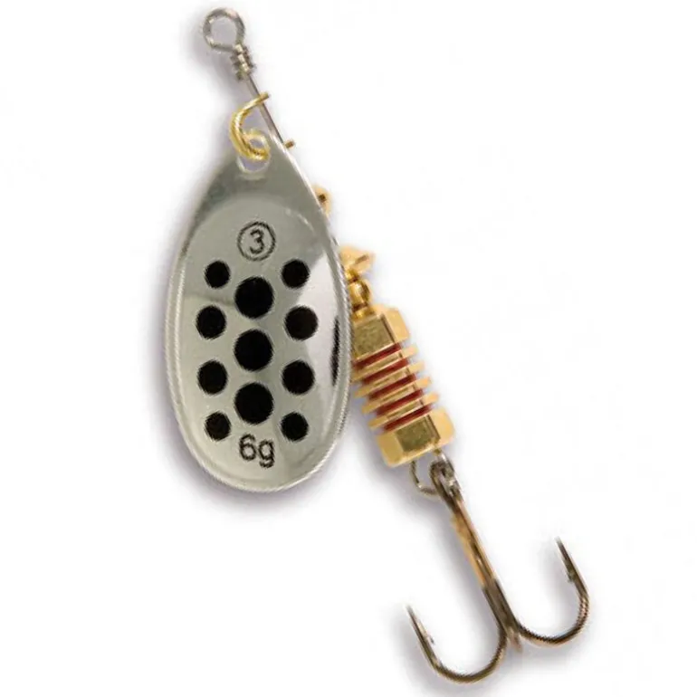 La cuiller tournante Mepps Aglia Argent points noirs est la référence dans la catégorie des leurres métalliques de ce type. Grâce à son cône de rotation évoluant en fonction des forces exercées dans l’eau, elle s’anime dès qu’elle touche l’eau et à toutes les vitesses de récupération.