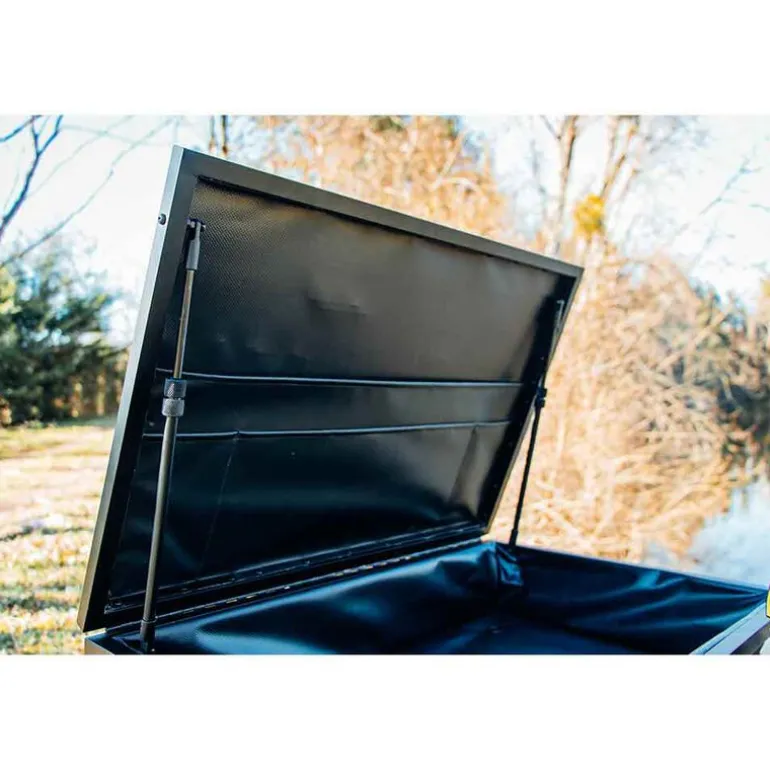 Fabriquée en toile EVA épaisse et parfaitement étanche, elle combine robustesse et fiabilité. Son ouverture est facilitée grâce à deux vérins intégrés, garantissant un maintien en position efficace, même par mauvais temps.
