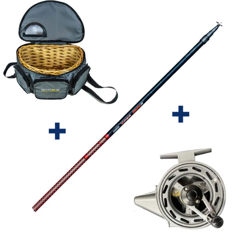 Un pack d’une canne téléréglable Garbolino Viper RC 2m25 à 4m80 en 6 brins avec un moulinet capoté Viper Toc 75 ainsi qu’un panier Truite.