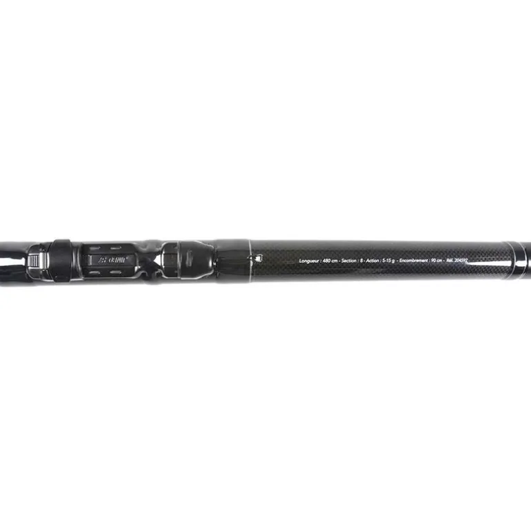 Son blank noir mat va éviter les reflets du soleil sur la canne, votre discrétion sera donc maximale. Le porte moulinet à plaque fixe s’adapte à tous les moulinets