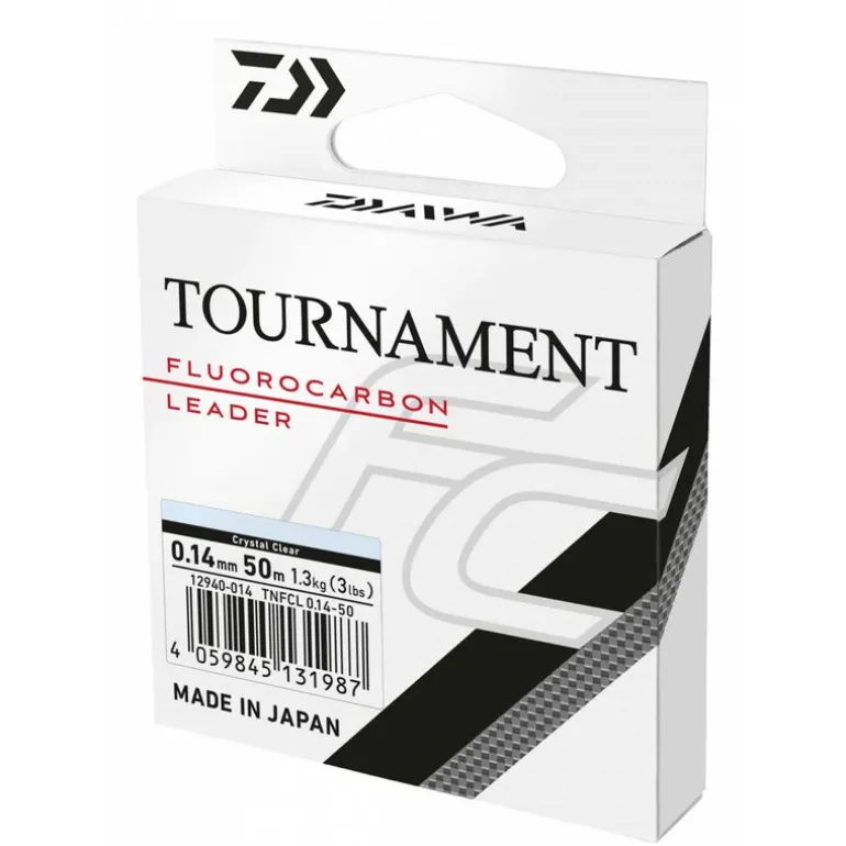 Le fluorocarbone Tournament FC Leader 100 % PVDF dispose d’une très faible élongation et une excellente tenue linéaire assurant une présentation optimale des bas de ligne. Une fois immergé, son coloris Crystal Clear est la contribution invisible du succès de vos parties de pêche. Très résistant, il bénéficie des critères qualités exigeants du label Daiwa TOURNAMENT qui englobent nos produits techniques fabriqués au Japon et a notamment passé avec succès le banc test de résistance à l’abrasion et aux nœuds.