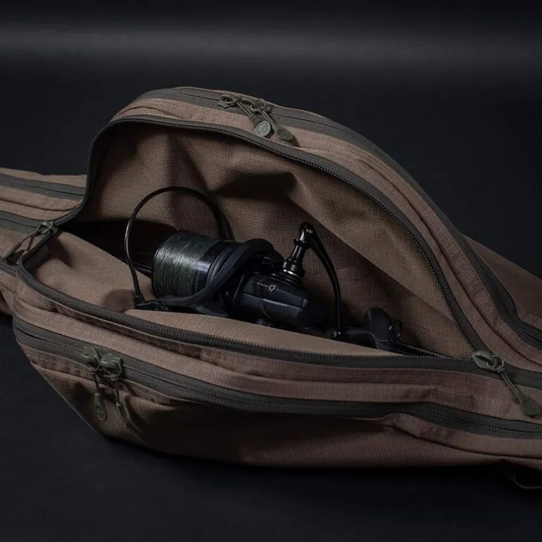 L’extérieur du fourreau est équipé de sangles et de poches pour fixer une épuisette et des piques, ainsi que d’une poche zippée dédiée au rangement des plombs. Pour un transport confortable, il dispose d’une sangle d’épaule rembourrée et amovible.