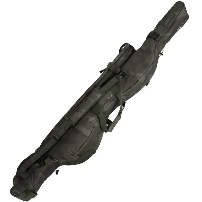 Le Bank-Tek 3 Rod Compact Sleeve 12FT est un fourreau compact et gain de place conçu pour transporter vos cannes, accessoires et abri en toute sécurité. Son agencement interne tête-bêche offre un profil très fin tout en acceptant facilement des moulinets big pit ainsi que des anneaux de 50 mm. Les séparations entièrement rembourrées et les sangles Velcro maintiennent parfaitement les cannes. Son système de poches latérales innovant peut s’étendre pour accueillir un bivvy type brolly et permet également de transporter une épuisette, un sac de pesée, un sac de conservation, ainsi que des piques. Il est aussi possible d’ajouter deux cannes supplémentaires à l’extérieur. Pratique au quotidien, il dispose de deux poignées de chargement, d’une bandoulière rembourrée et de deux poches externes pour plombs.