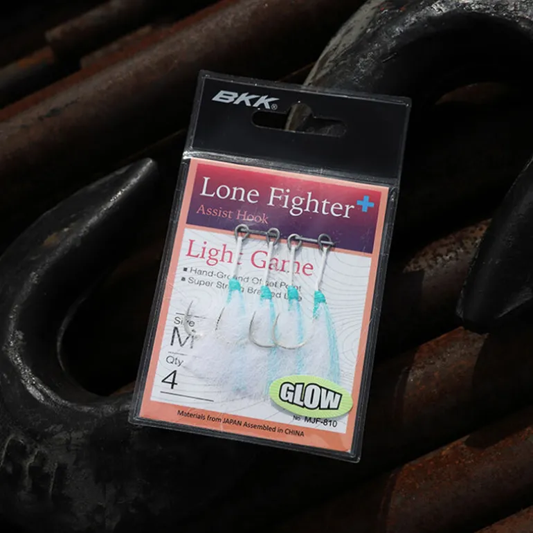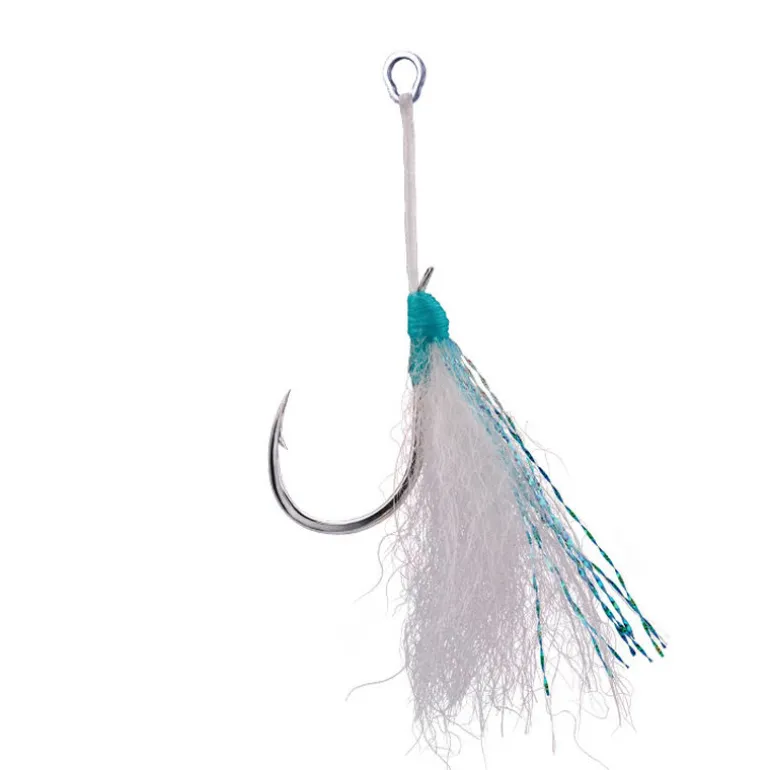 Assistlight simple avec hameçon HG ( affûtage à la main) monté sur tresse renforcée avec ligature phosphorescente sur teaser et anneau soudé Inox.