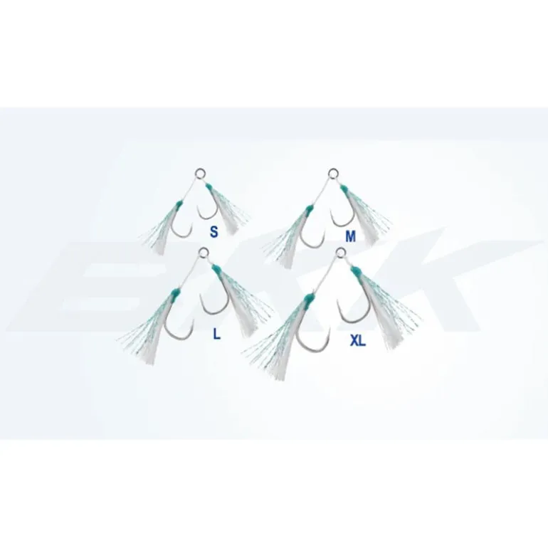 Assist light double avec hameçons HG ( affûtage à la main) montés sur tresse renforcée avec ligature phosphorescente sur teaser et anneau soudé Inox.