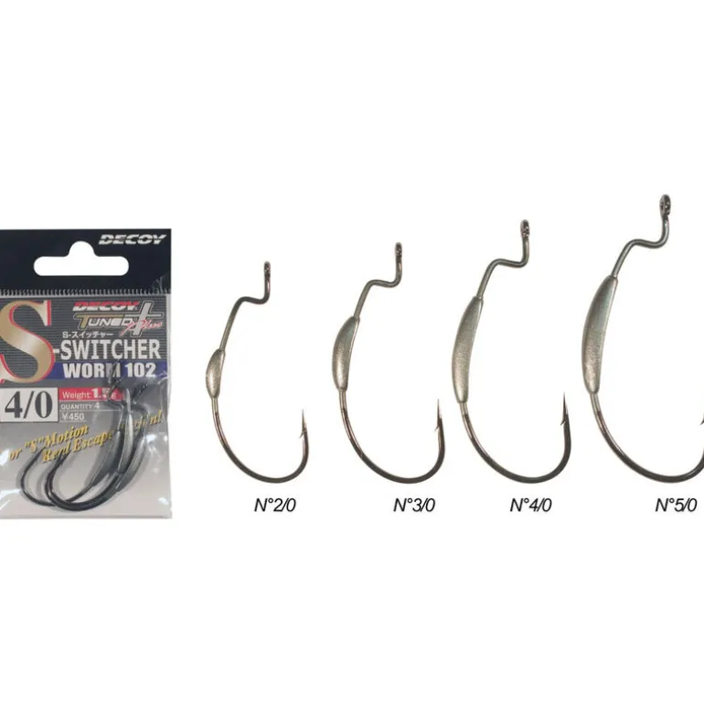 Le Worm 102 est un hameçon offset doté d’une plombée sur la hampe. Ce positionnement de la plombée permet au leurre d’être très équilibré et d’évoluer légèrement sous la surface.