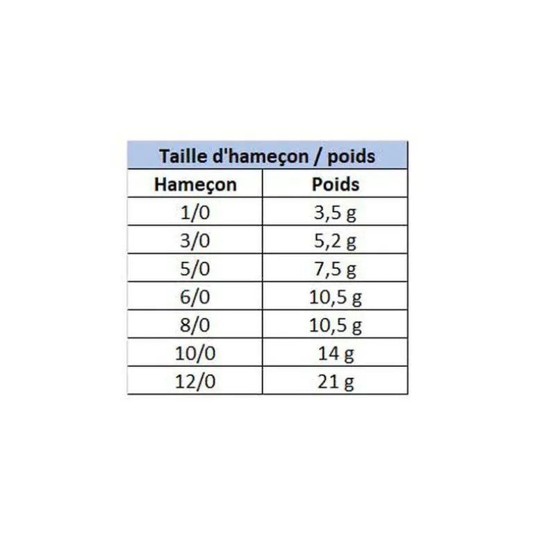Guide de correspondance taille d’hameçon texan / leurre :