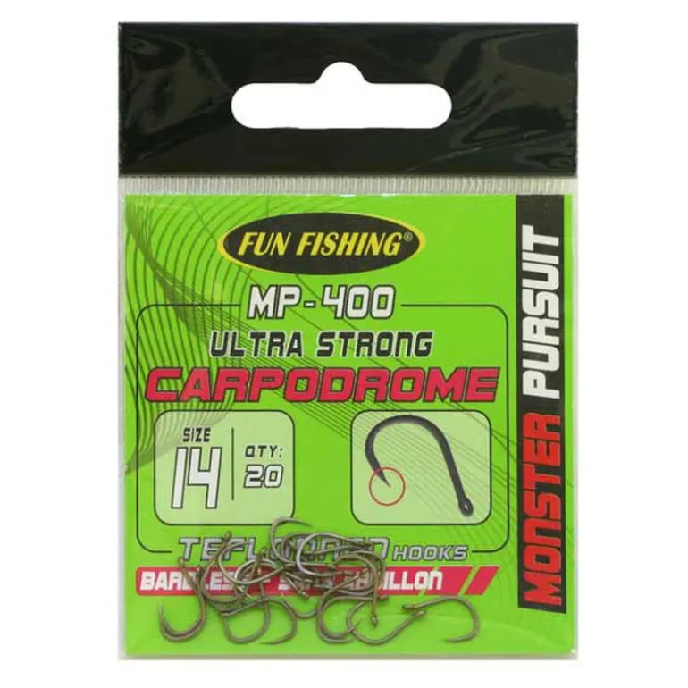 Conditionnés en sachet de 20, les hameçons à œillet sans ardillon MP400 sont disponibles en 6 tailles différentes : n°6, n°8, n°10, n°12, n°14 et n°16.