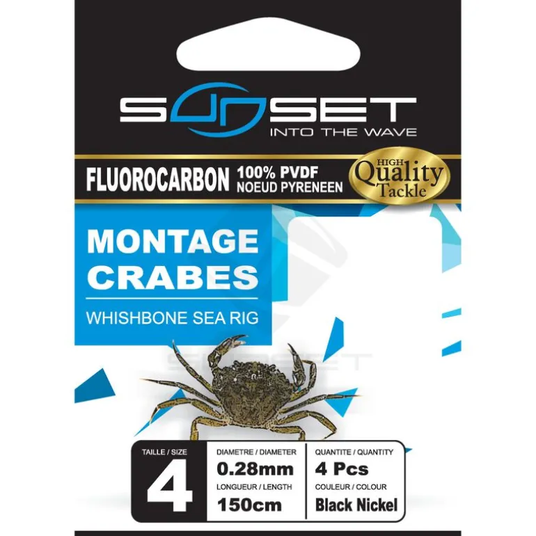 Les hameçons montés mer Sunset Rs Competition Montage Crabe / Fluoro possèdent une empile de 1m50 en Fluorocarbone 100% PVDF munie d’une boucle pour une fixation rapide.