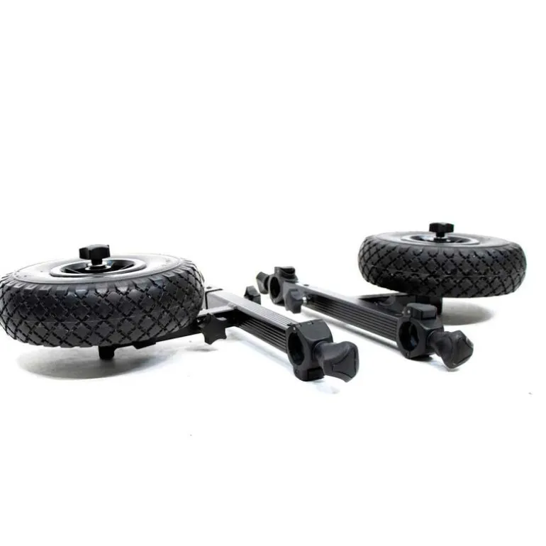 Ce kit chariot comprend donc les 2 supports munis d’une roue increvable et démontable rapidement.