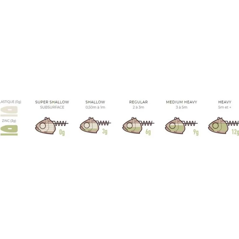 Une tête, plusieurs options: Une tête unique compatible avec plusieurs tailles de corps. Pêchez avec un même leurre dans plusieurs profondeurs d’eau.