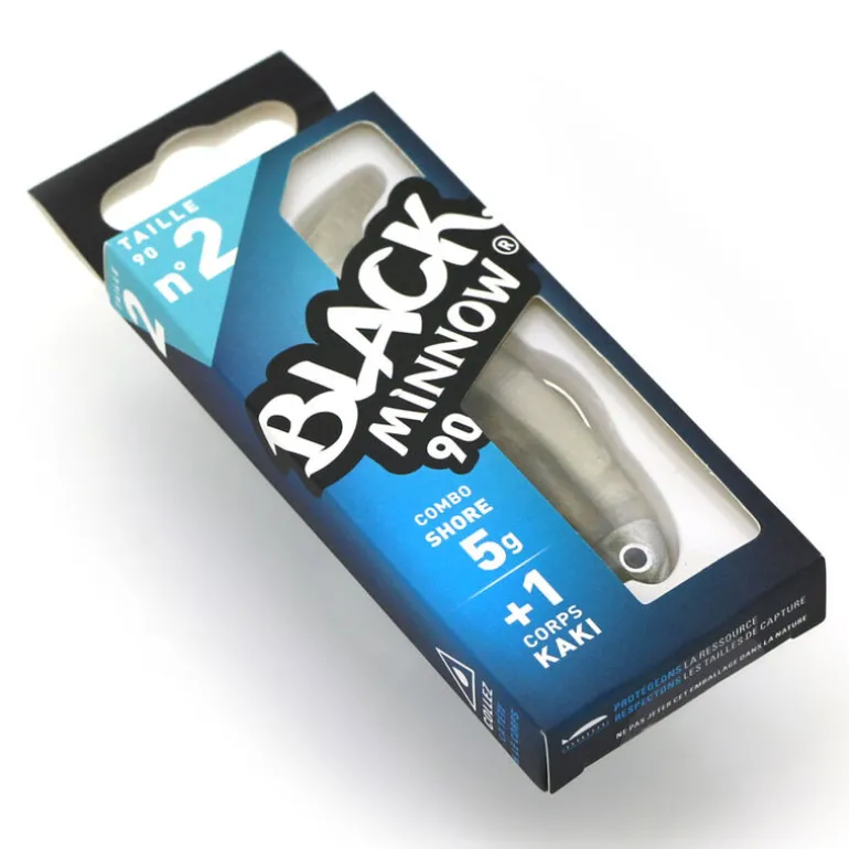Constitué d’ un leurre monté (tête shore 5g + hameçon + corps 90mm) + un corps de rechange.Le Black Minnow est une innovation de la société FIIISH.