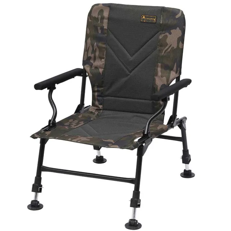 La gamme de levels Avenger offre le meilleur des solutions fonctionnelles et élégantes pour parer à toute éventualité. Nous avons combiné un matelas généreusement rembourré, utilisant le camouflage subtil de la chaise Avenger, à des verts élégant. Mais aussi des châssis en acier ultra-résistant, des raccords de qualité, des pieds réglables, des pieds anti-boue pivotants et des accoudoirs avec revêtements en néoprène. Les fauteuils Avenger offrent le meilleur en terme de fonctionnalité à un prix abordable.