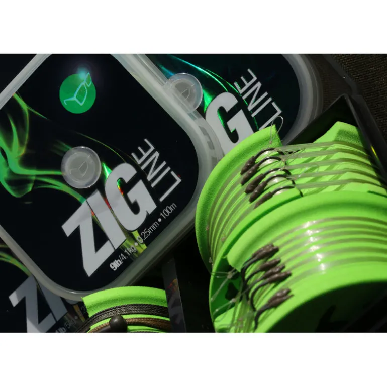 Afin d’accroître encore plus la discrétion du Zig Line, il s’est vu être muni d’un coloris vert. Possédant une faible élasticité, le Zig Line Korda permettra ainsi d’assurer un parfait effet mécanique lors de l’aspiration de votre montage. Effectivement la pêche au Zig Rig nécessite d’avoir un monofilament très rigide afin de détecter facilement les touches et d’assurer une parfaite piqûre.