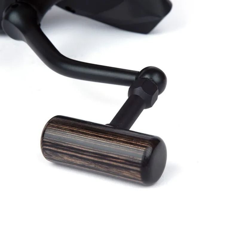 Fabriqué en graphite léger, le corps et le rotor intègrent une protection contre les emmêlements grâce à un guide de ligne rotor flottant. Avec sa finition noire mate élégante, une poignée en aluminium anodisé noir et un barillet en bois foncé, le HEROX se distingue par sa qualité et son raffinement.