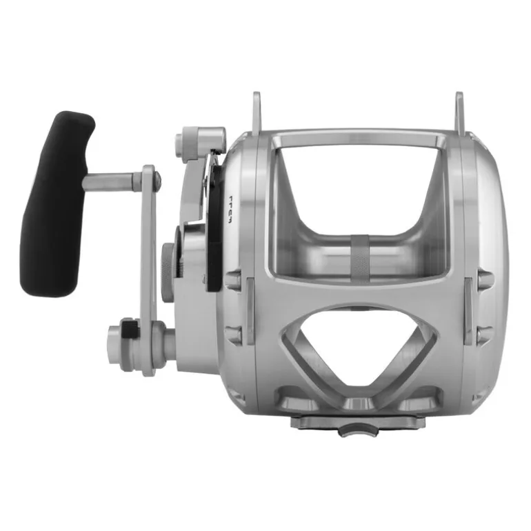 Le moulinet de traîne Penn International 130 VI VS série Silver possède un bâti et des flasques en métal qui lui assurent un alignement parfait des engrenages en cuivre, même lorsque le moulinet subit de très fortes tensions.