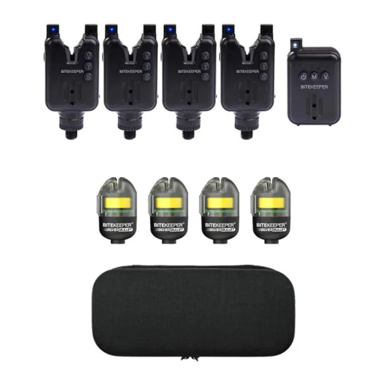Cet ensemble d’alarmes de pêche BITEKEEPER se compose de 1 à 4 détecteurs avec une centrale d’une portée allant jusqu’à 100 m! Le kit alarme pêche à la carpe est 100% étanche et rechargeable.Le détecteur dispose de plusieurs options de tonalité, de sensibilité et de volume et le récepteur vibre et alerte lors de la réception d’une morsure. Les ensembles d’alarmes de pêche BITEKEEPER 2+1, 3+1 et 4+1 sont livrés avec un étui de protection noir gratuit qui les rend pratiques et sûrs à ranger et à transporter.
