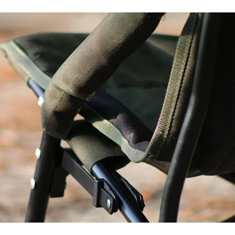 Grâce à sa structureproche du sol, il offre un très bon confort d’assise.Hyper compact, il se loge très facilement sous un bedchair ou dans un tapis de réception pour les pêches à roder.