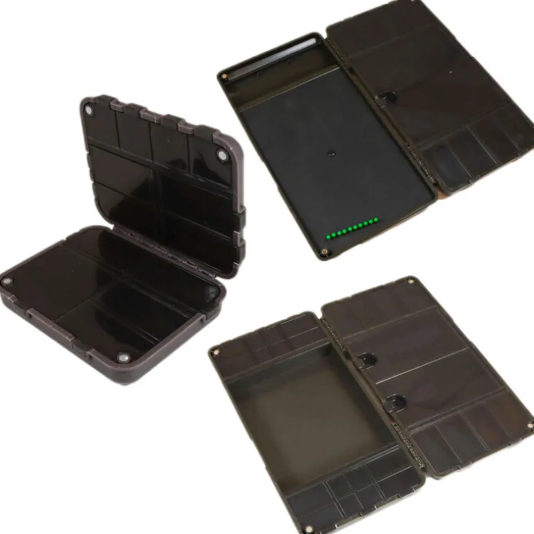 Elle se ferme à l’aide d’aimants et dispose d’une plaque pour fiwer des bas de ligne ainsi que de 8 compartiments de taille moyenne et un grand compartiment qui se ferme. Vous apportant une grande organisation dans votre boite.