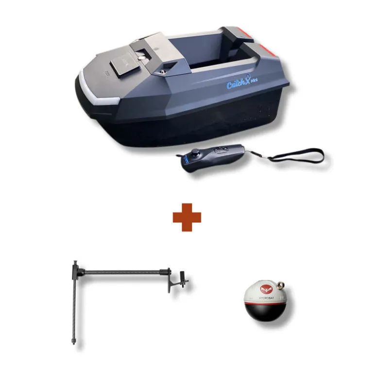 Un pack comprenant un bateau amorceur avec un sondeur qui vous permettra de voir sur votre téléphone les fonds et les poissons ainsi que son bras de fixation qui vous permettra de position le sondeur sur le bateau sans aucun problème.