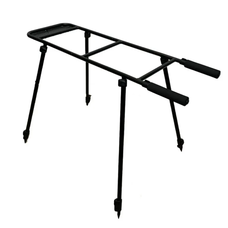 Un support complet avec les 4 pied réglable en hauteur, deux emplacement seau et un crochet qui vous permettra de pouvoir accrocher une pelle à appâts par exemple.