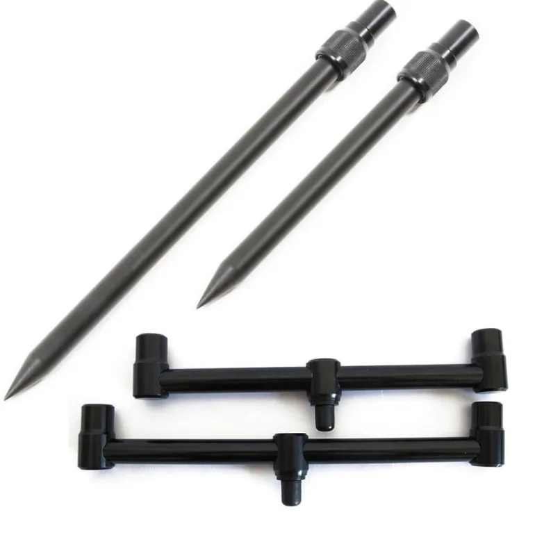 Un pack de 2 buzzbar 2 cannes et 2 piques pour vous permettre de positionner sur la berge vos deux cannes en direction du spot souhaitez pour identifier au plus vite de l’activité sur vos montages. Un piques plus grande que l’autre afin de vous permettre de relever ou baisser le scion en fonction de votre besoin (fort vent ou végétation sur la berge)