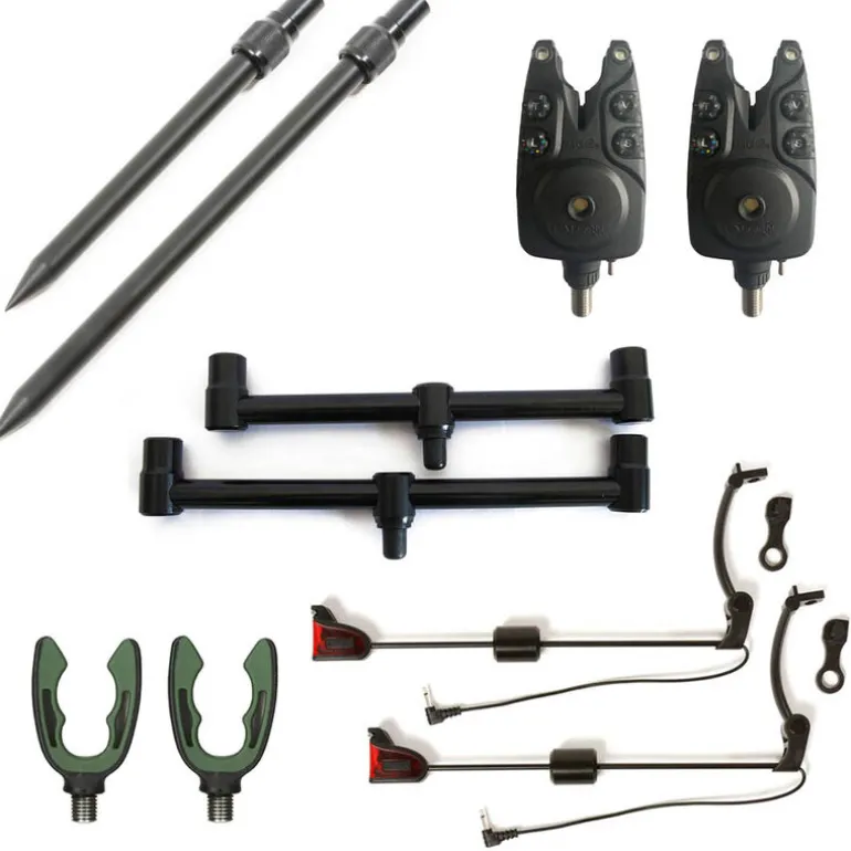 Un pack comprenant 2 piques, 2 buzzbar, 2 pro tech indicator, 2 détecteurs Falcon XPR et 2 supports arrières pour vous permettre de position correctement deux cannes en place pour vous alerter de la moindre activité sur vos montages.