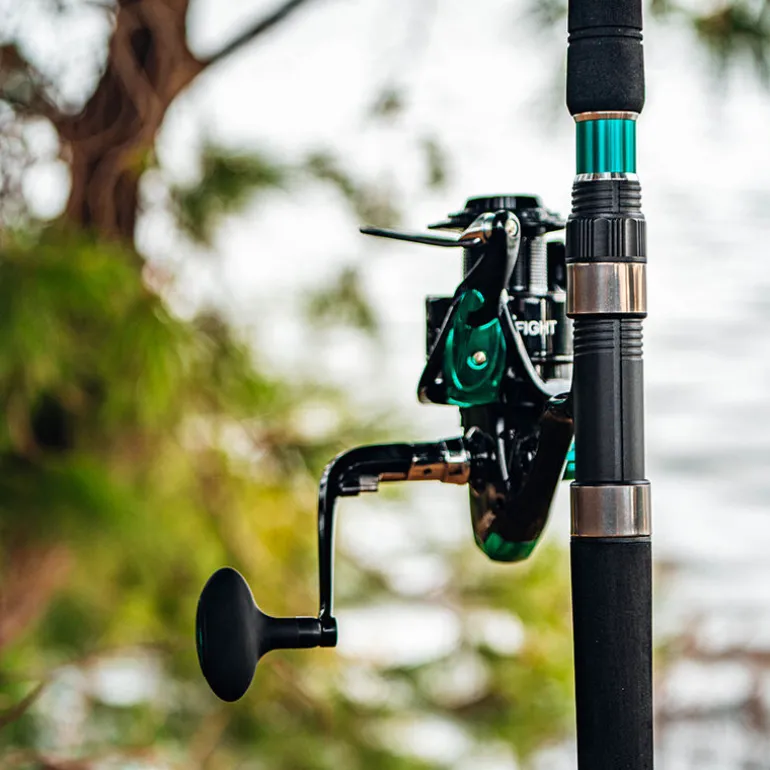 Il comprend une canne Tank Allround CS de 3 mètres, capable de lancer jusqu’à 600g, montée avec 10 anneaux tripattes en céramique pour une meilleure résistance à l’abrasion. Fabriquée en fibre pleine, elle est équipée d’un poignet et manche en EVA, assurant une excellente prise en main et un bon confort en action de pêche, même lors des combats les plus intenses.